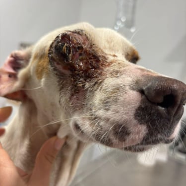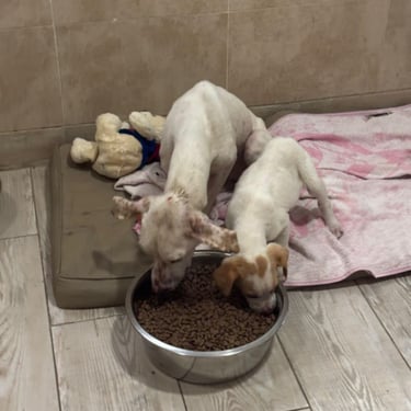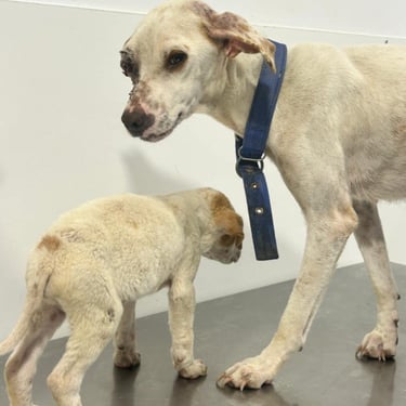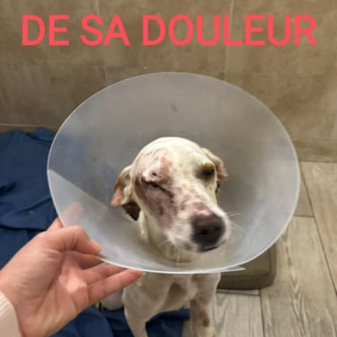 Sortis de leur enfer, mais pas encore de cette douleur insupportable pour la maman, 4 heures de route pour rejoindre la clinique vétérinaire et ils seront soignés comme il se doit, merci de nous aider pour cela. Il va y avoir énormément de frais d'ici, dans 4-5 mois, leur départ pour la France.