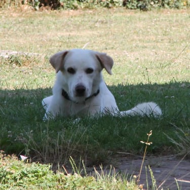 Léo, avec sa patte arrière gauche blessée d'un coup de fusil, qui se déplaçait en grande souffrance, a été secouru par une bénévole qui l'a confié au refuge, puis une bienfaitrice l'a accueilli chez elle dans une pièce. Le vétérinaire a, malheureusement, été dans l'obligation d'amputer Léo