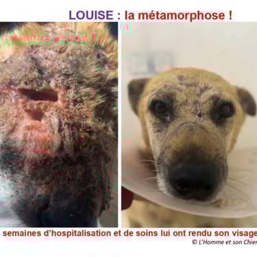 Sauvée le 24 mars 2025 au bord d’une route en Tunisie, défigurée, avec ses deux seuls chiots survivants d’une vie de galère et de souffrance : Louise, c'est l'histoire d'une chienne martyre de Tunisie, une parmi des millions...